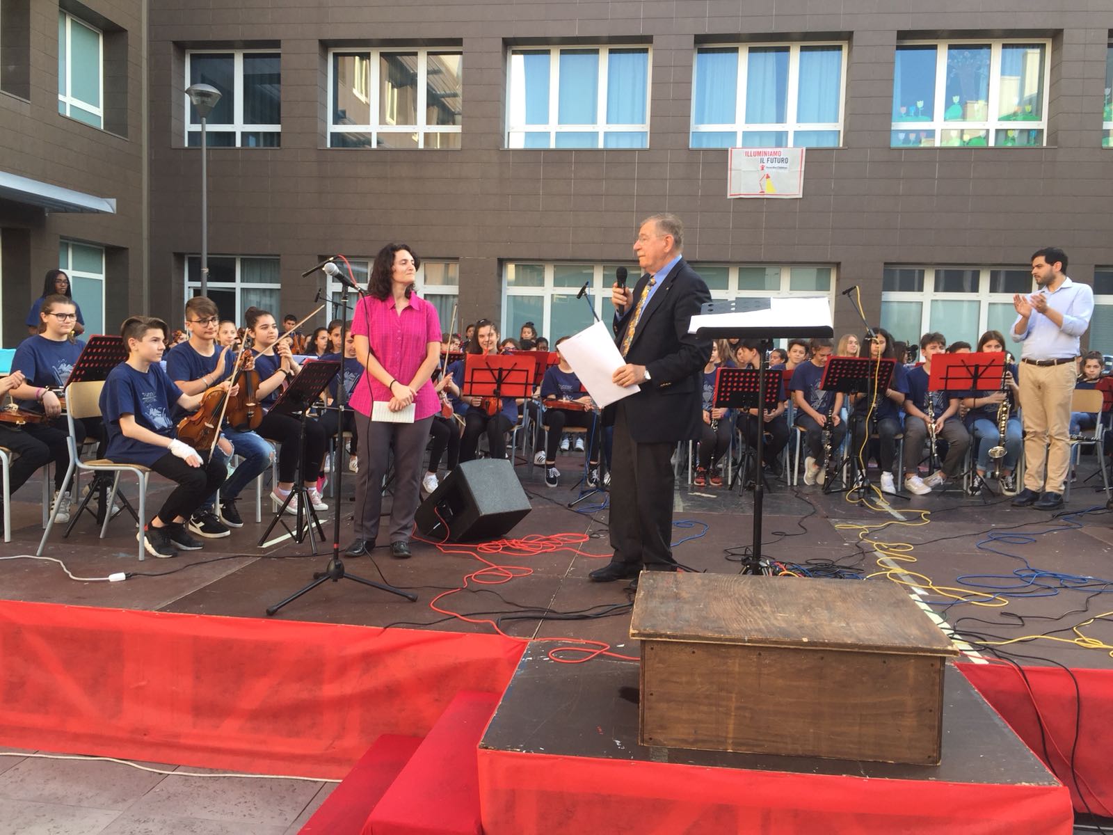 La consegna dei premi, avvenuta prima dei loro consueti concerti di fine anno ai quali abbiamo assistito, ha dato la possibilità al PDG Baraldi di parlare un po’ del Rotary e di fare conoscere quello che facciamo nel campo sociale, nel mondo e in particolare modo parlando del progetto “Polio Plus”.