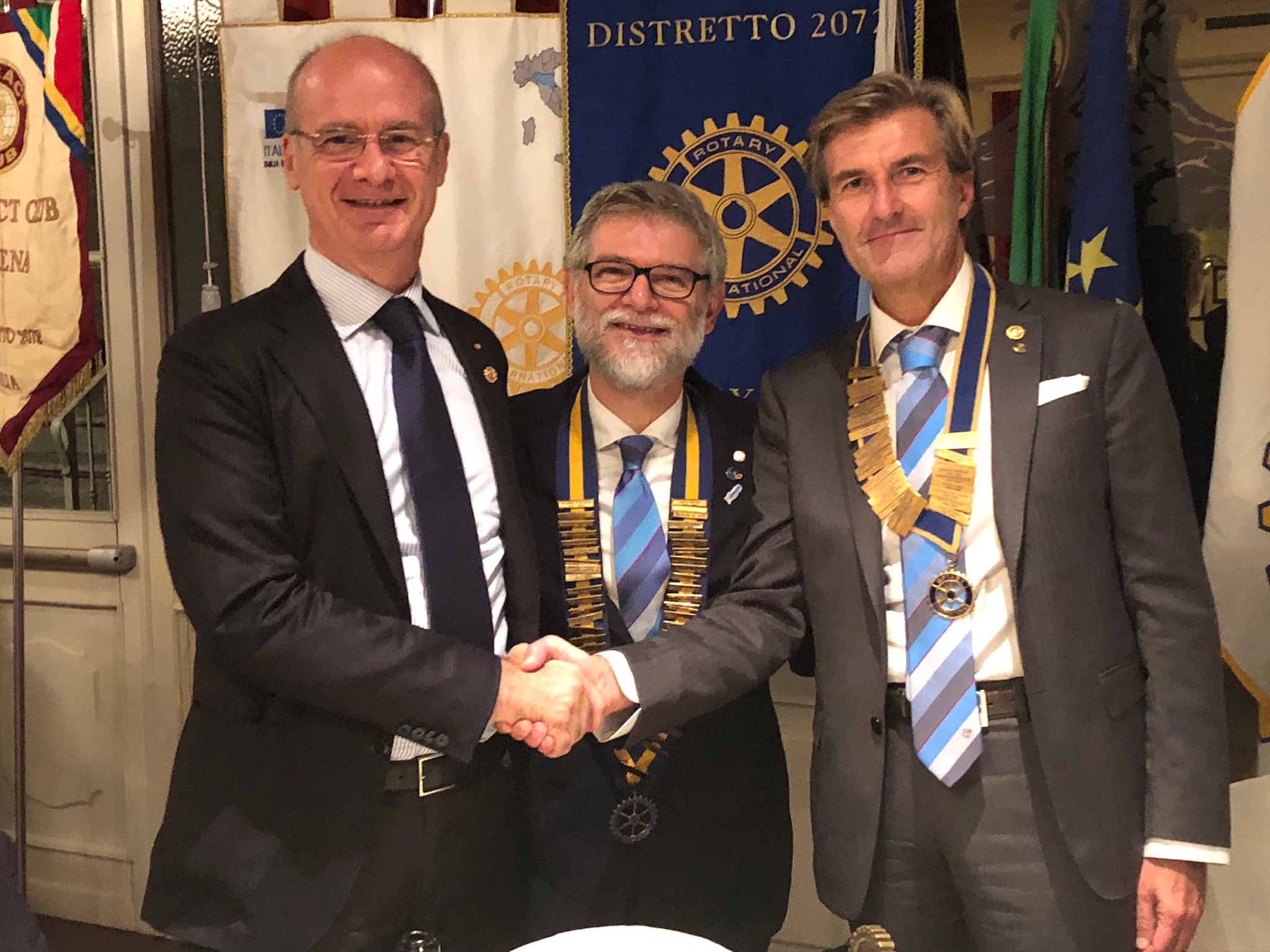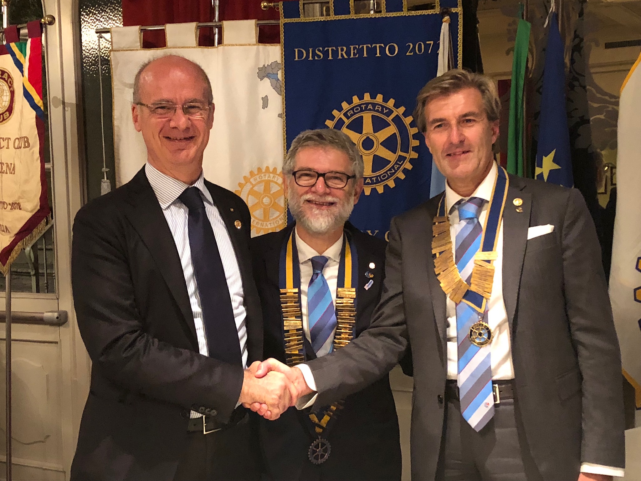 L’occasione di presenza del Governatore ha permesso di consegnare a 5 Soci (Kluzer, Levi, Romano, Giovetti, Zanardi) i Paul Harris Fellow, ottenuti sia per il contributo personale “Ogni rotariano Ogni anno ” sia per merito di servizio verso il Club. Il DG ha anche voluto distribuire a 5 soci (Boni , Farinetti, Bongiovanni, Forghieri e Gambigliani Zoccoli) indicati per l’occasione dal Presidente simboliche spille con il logo dell’annata rotariana internazionale in segno di riconoscenza per l’ospitalità. A chiudere la serata il consueto scambio di doni fra DG e Presidente del Club e loro consorti.